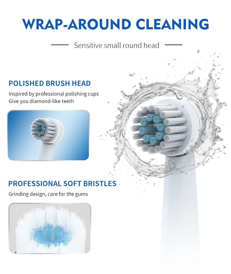 ·Every 30 seconds, the brush will automatically stop, prompting the replacement cleaning area